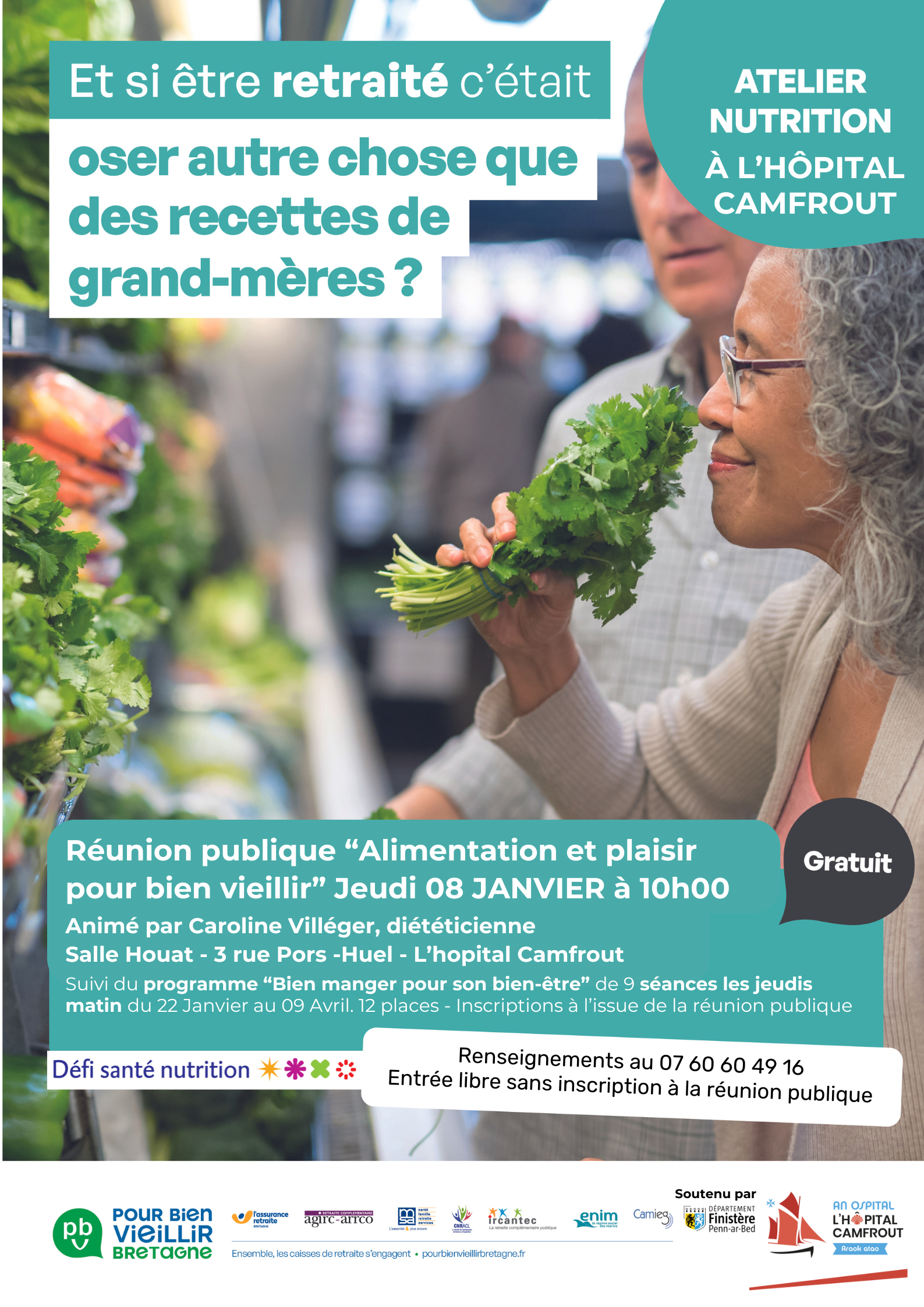 Une conférence grand public "Alimentation et plaisir pour bien vieillir" est organisée pour échanger sur la thématique et recueillir les inscriptions le jeudi 08 janvier à 10h.