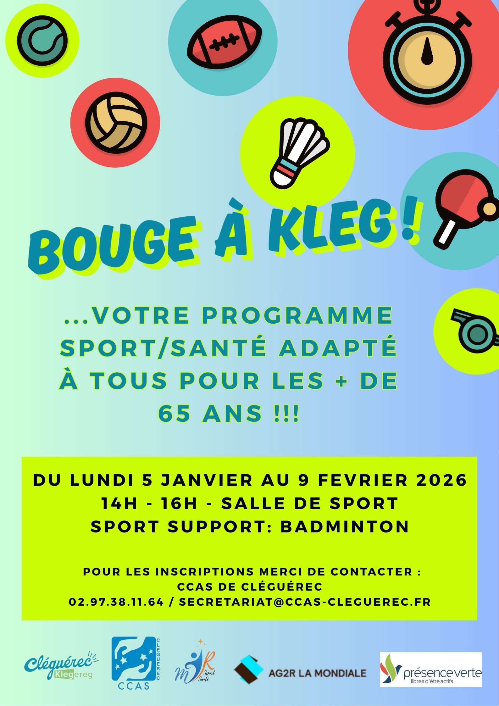 La commune de Cléguérec est heureuse d’annoncer le lancement de Bouge à Kleg !, une nouvelle activité de sport adapté destinée aux seniors de plus de 65 ans résidant sur la commune.